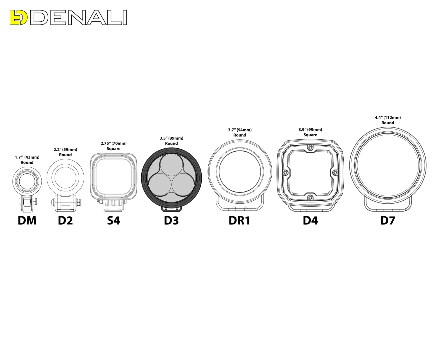 Note :Â DENALI offers dozens of universal and vehicle specific light mounts. To determine the best mounting location consider the following tips. For maximum beam distance at night, mount the lights higher up. For maximum day time visibility, mount the lights down low to increase your overall lighting footprint. To create the optimum lighting and visibility package, mount one pair of long distance spots up high for night time distance and one pair of flood or hybrid lights down low for day time visibility and night time fill.Â