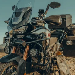 This vehicle specific driving light mount allows you to mount any DENALI driving light at the OEM location built into the DesertX crash bars. This kit includes beefy powder coated steel brackets with and M8 mounting hole and all necessary mounting hardware.