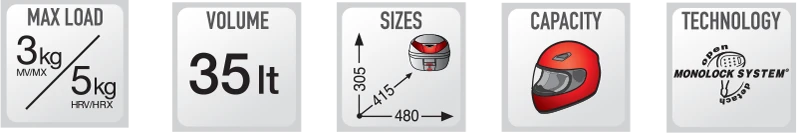 - Proven and secure GIVI Monolock Micro 2 locking system